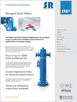 SR壓縮空氣法蘭除塵過(guò)濾器是一種安裝在干燥機(jī)下游用于濾除壓縮空氣中粉塵的、最大處理流量可達(dá)25500Nm3/h(15000SCFM)的大流量法蘭接口的壓縮空氣過(guò)濾器。SR壓縮空氣法蘭除塵過(guò)濾器是針對(duì)大流量壓縮空氣過(guò)濾而設(shè)計(jì),主要應(yīng)用于化工、電子、食品及飲料、加工制造、軍事、石油和天然氣、噴涂噴漆、制藥、氣動(dòng)輸送等行業(yè)。本系列產(chǎn)品有8種型號(hào),從DN80到DN300的多種接口可供選擇,最大工作壓力為16barg(232psig),最高工作溫度為120℃(248℉)。