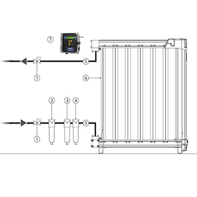SRB系列過濾器與SR CMD膜干燥器組合在一起,可以同時解決壓縮空氣凈化和干燥的問題,過濾精度可以達到0.01μm,壓縮空氣出口殘油量可達0.001mg/m3,露點可以達到-40℃,整個系統(tǒng)幾乎免維護